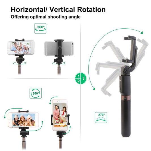 Wireless Selfie Stick Extendable Phone Camera Stick Tripod w/ Detachable Rechargeable Remote Shutter