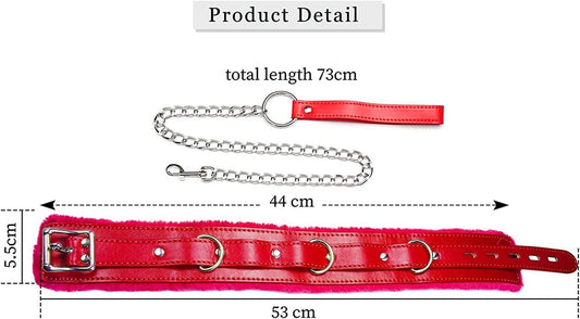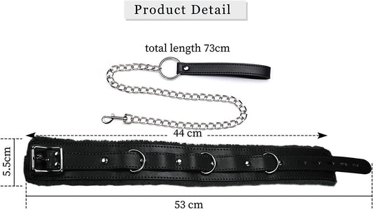 Plush Leather Collars Choker with Chain Detachable Leash Rope Cosplay Couple for Women Men