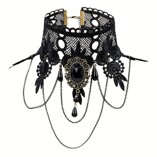 Gothic Retro Black Lace Lolita Necklace Pendant Vampire Chain Lace Necklace, Halloween Lace Choker Necklace Holiday Jewelry