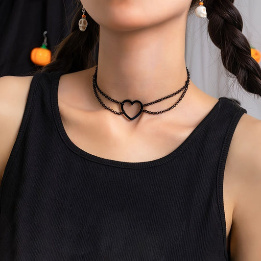 Upgrade Your Style with Our Simple Fashion Necklace - Gothic Black Heart Decor Chain Tassel Neck Choker Necklace (1pc)
